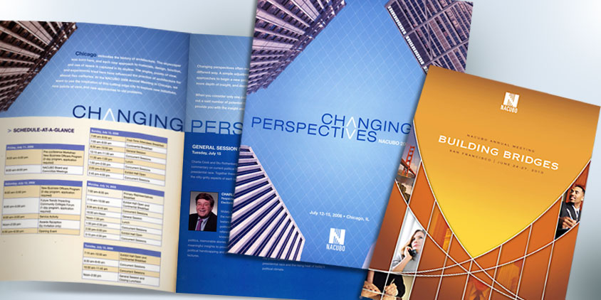Venue-specific conference themes are supported by appropriately consistent graphic frameworks.