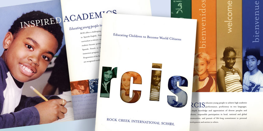 Die-cuts literally provide a peek through the cover to a summary of the school’s educational mission.